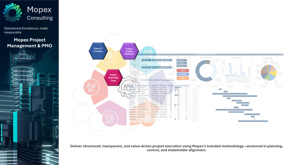 Deliver structured, transparent, and value-driven project execution using Mopex’s branded methodology—anchored in planning, control, and stakeholder alignment.